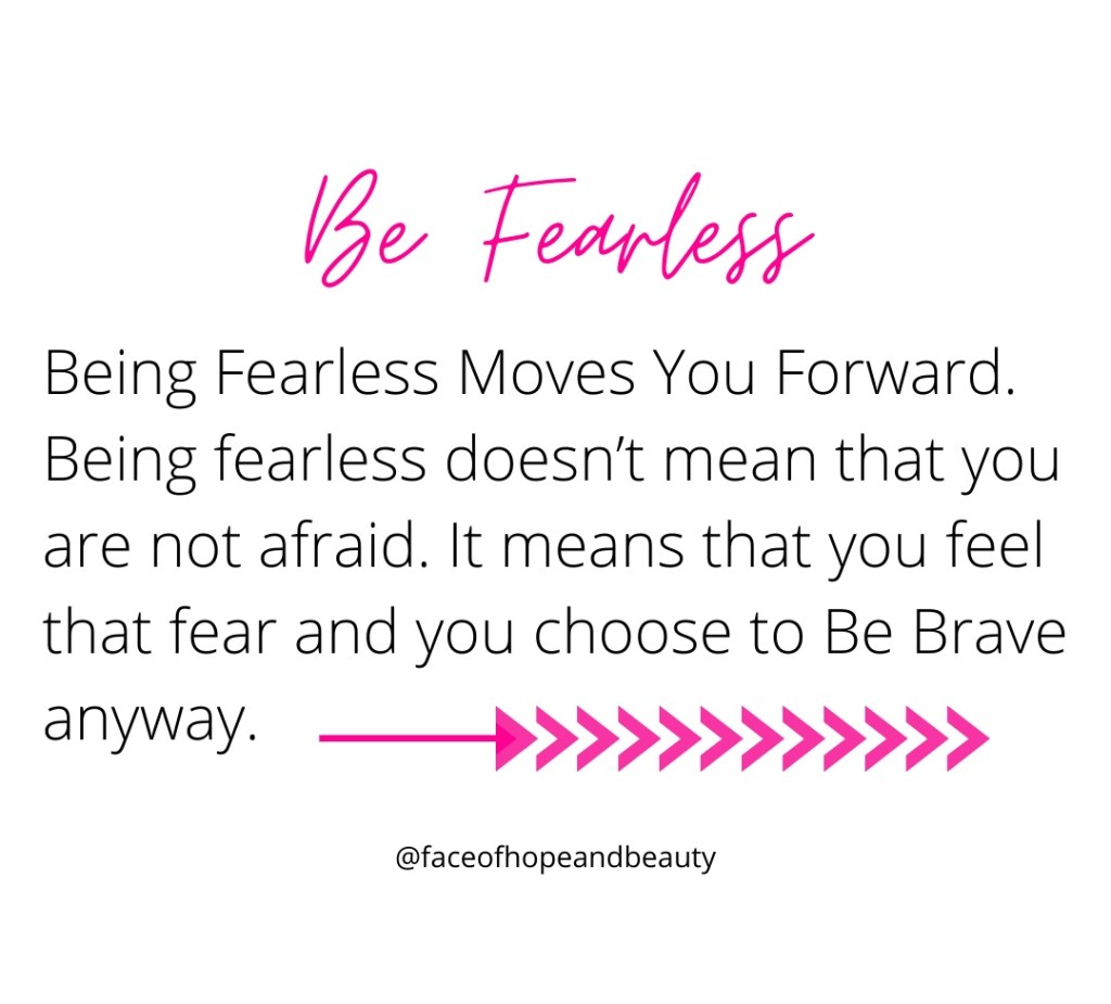 Today’s Reminder: Being Fearless Moves You Forward. Being fearless doesn’t mean that you are not afraid. It means that you feel that fear and CHOOSE to Be Brave anyway.