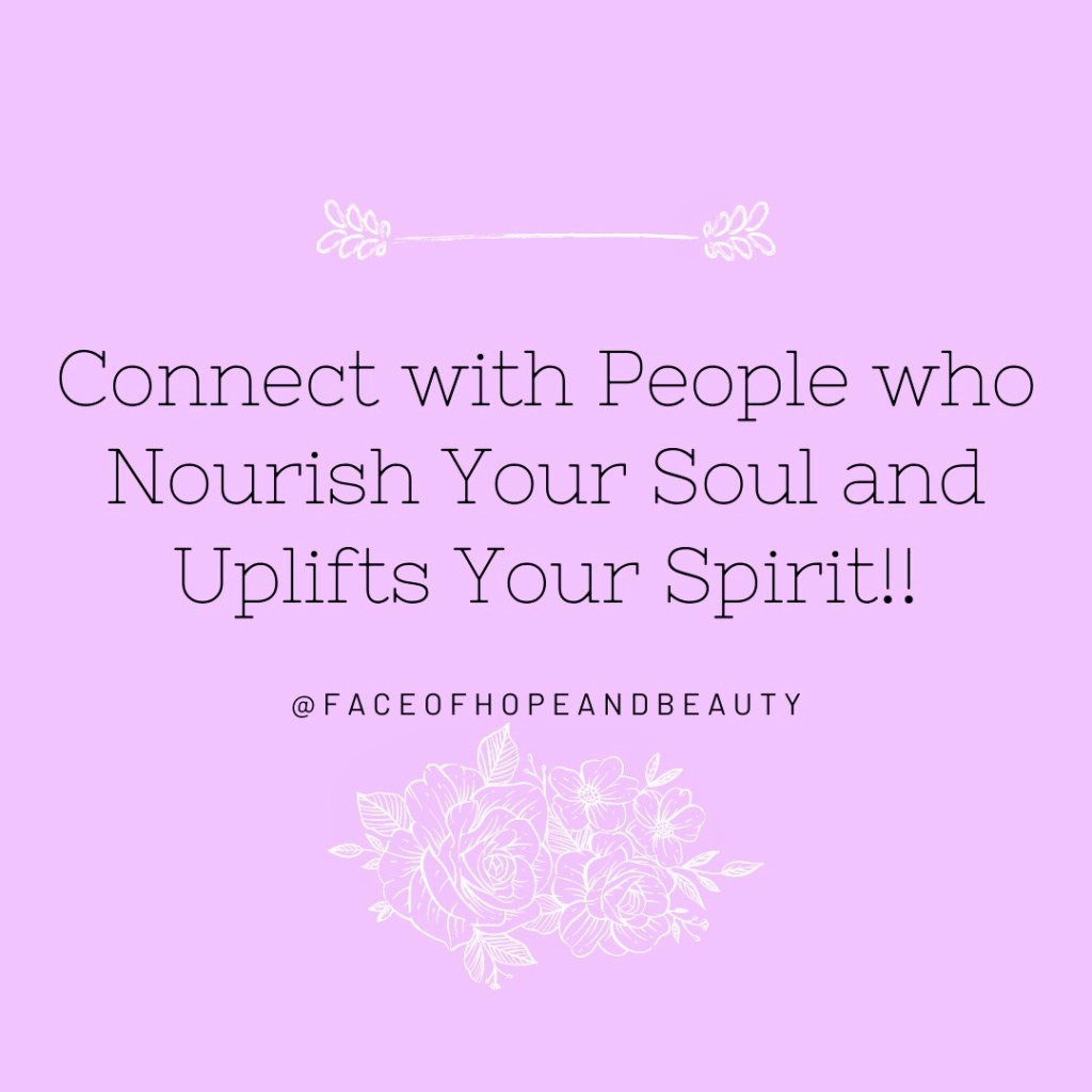 Connect with people who Nourish your Soul and Uplifts your Spirit. It’s so very important for us to have people in our lives who we can connect with that Nourishes our Soul and Uplifts our Spirit.
