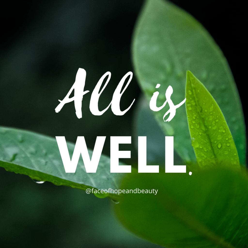 “All is well.” Those three little powerful words encourages me to my core and uplifts my spirit every time that I hear those words.
