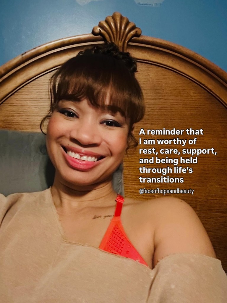 • Remembering that I am worthy of rest, care, support, and being held through life’s transitions