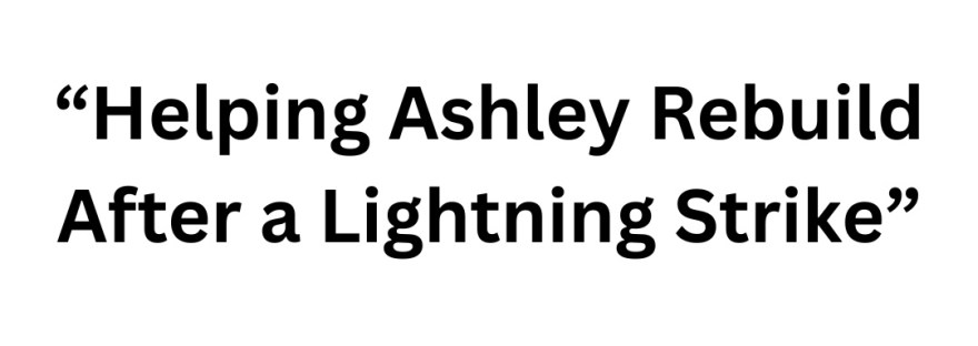 In October 2024, Ashley’s home was struck by lightning. At the time of the lighting strike Ashley was laying down in the comfort of her bed when lighting came through her ceiling hitting her, causing significant damage and upheaval to her life. From electrical issues to major home repairs, to Ashley's medical bills from the… Continue reading “Helping Ashley Rebuild After a Lightning Strike”